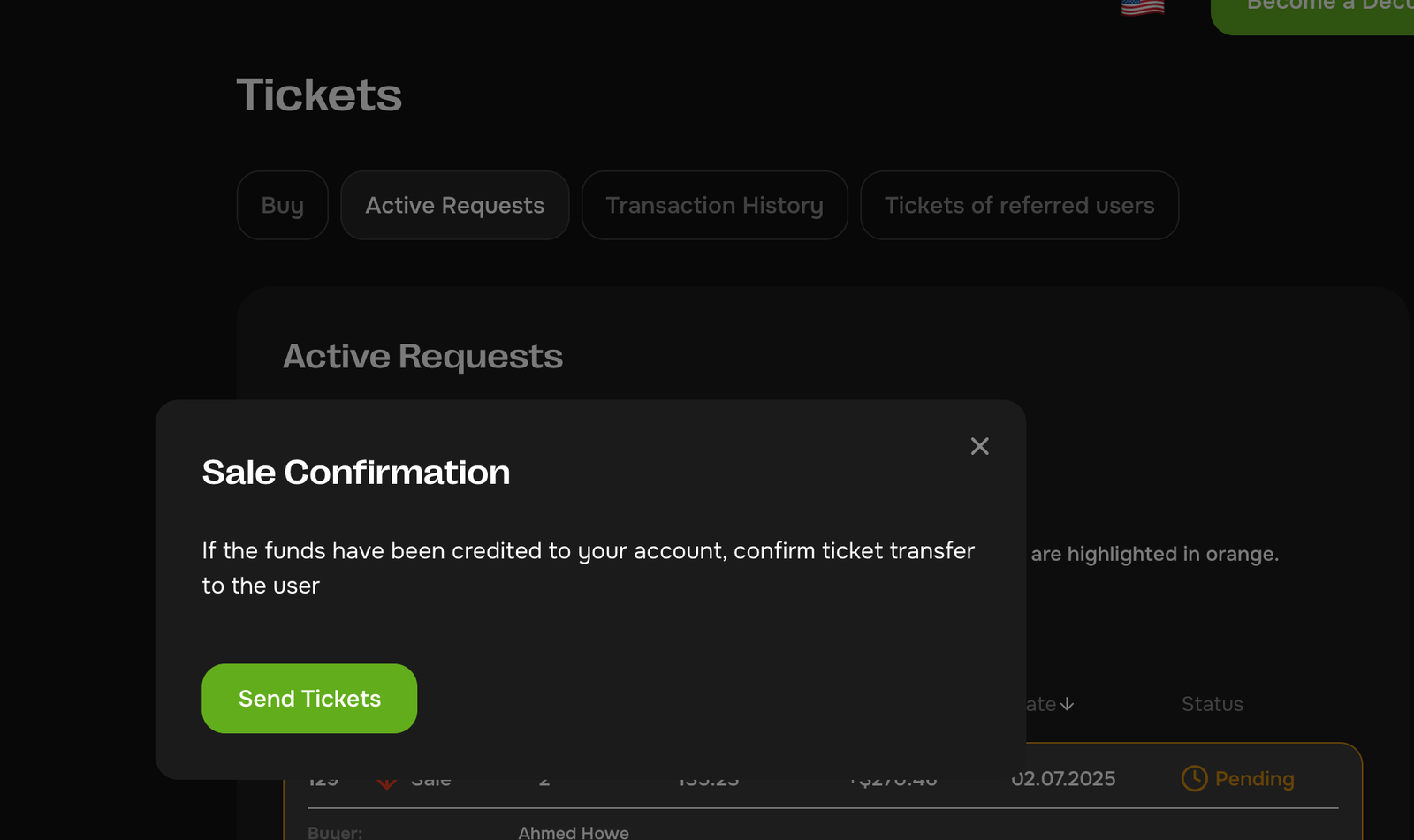 Po potvrzení převodu klikne provozovatel stanu na tlačítko "Odeslat letenky".