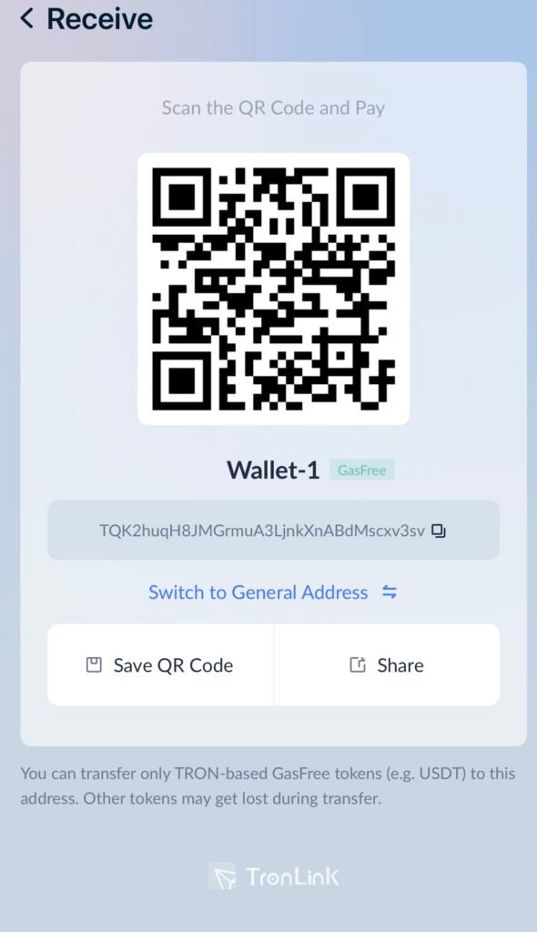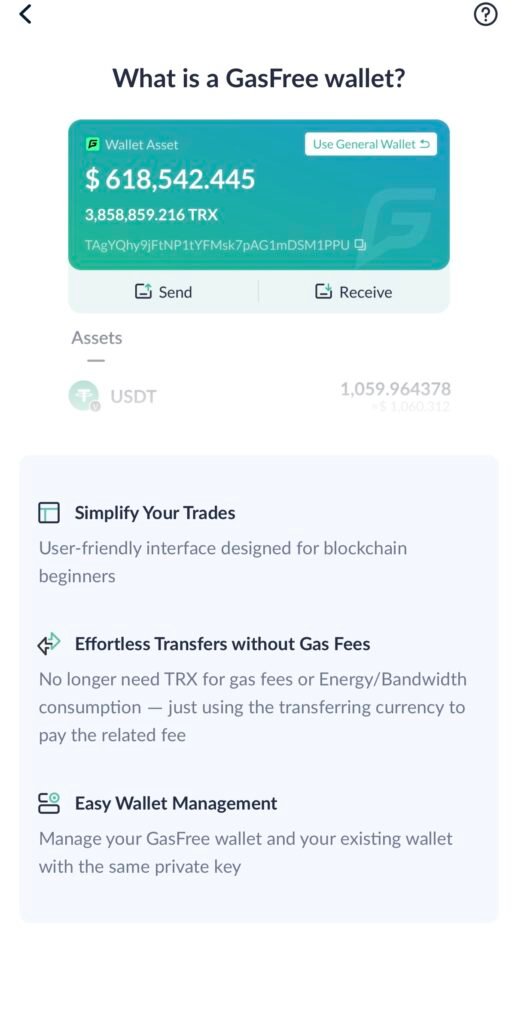 1. Peněženka GasFree - samostatnou dílčí peněženku (speciální účet) v TronLinku, propojenou s vaší běžnou peněženkou. Umožňuje provádět transakce s USDT (TRC-20) bez TRX a platit provize přímo v USDT.