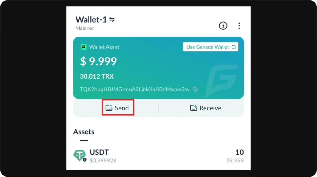 V horní části aplikace by mělo být uvedeno: Mainnet (TRON). Pokud tomu tak není, klepněte na a vyberte.