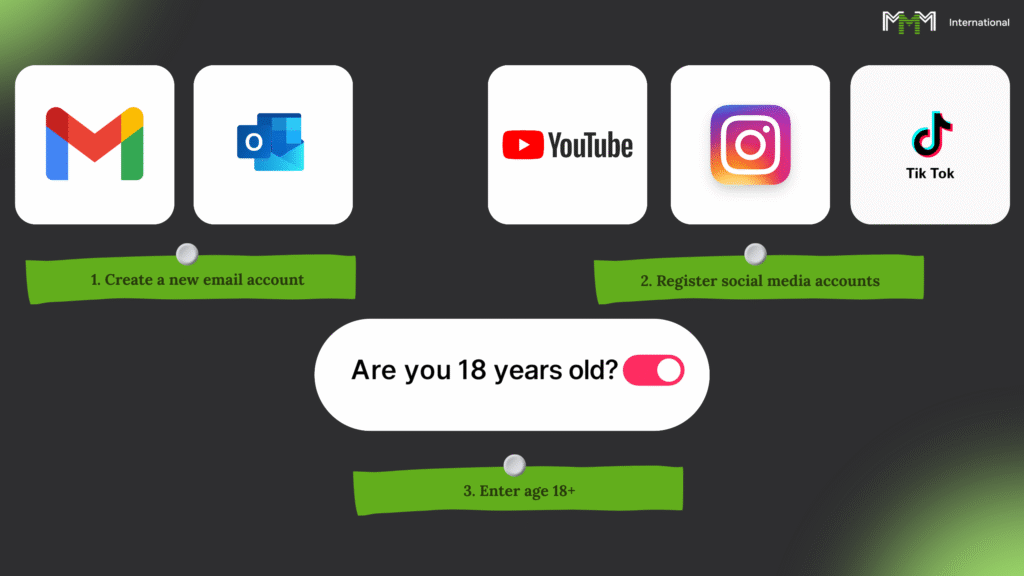 TikTok, Instagram, YouTube — выбирай, где будешь зарабатывать. Но регистрируй всё сразу под ту цель, которую преследуешь. - Возраст ставь 18+