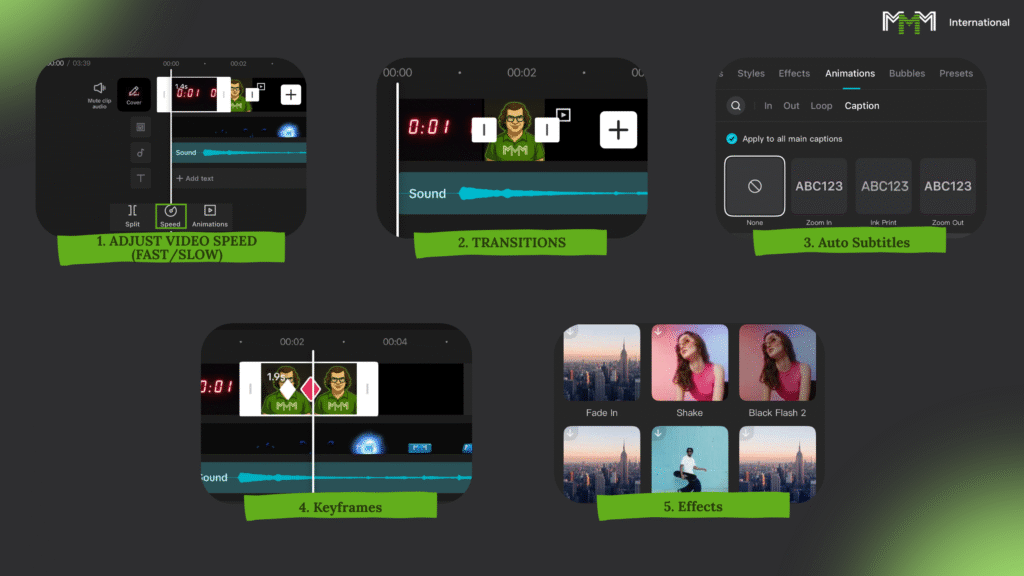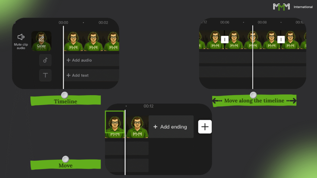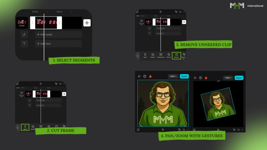 – Монтировать материал от первого кадра до последней секунды прямо в CapCut.