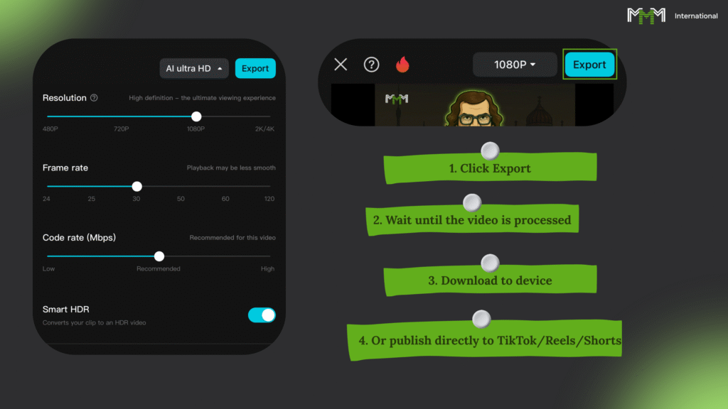 – Делает вертикальные видео под TikTok, Shorts, Reels — без плясок и извращений