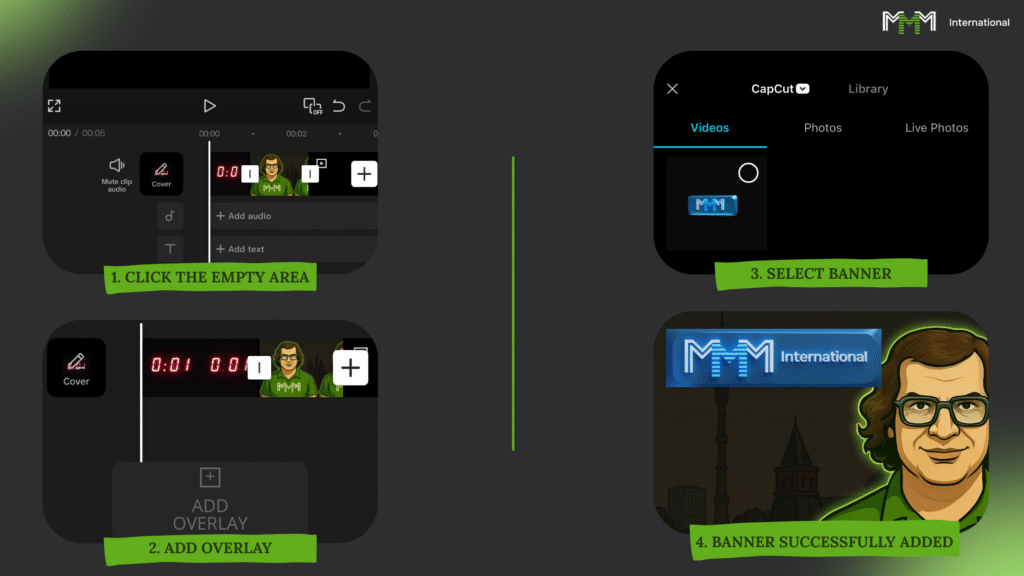 - Открыл редактор (CapCut или что угодно), вставил баннер, оформил.